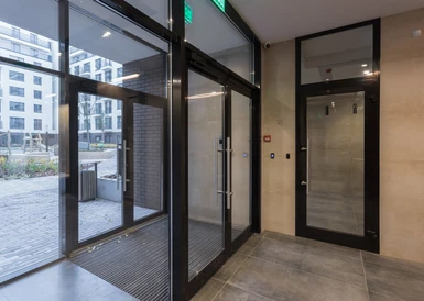 В домах Брусники прозрачные сквозные подъезды. Жители видят, что происходит внутри подъезда и снаружи во дворе. Вход находится на уровне земли. Это удобно велосипедистам, мамам с колясками и пожилым людям.
