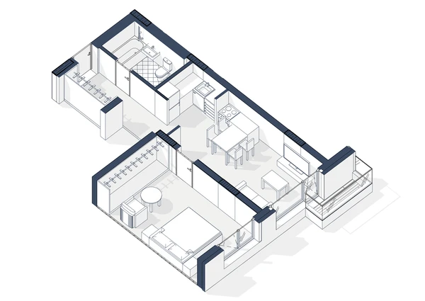 Квартира с кухней-гостиной и двумя спальнями в квартале Авиатор