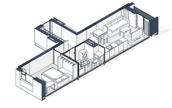 Обустройте в квартире большую кухню-гостиную и спальню или выделите разные функциональные зоны и разместите детскую комнату. В центральной части можно оформить хозяйственный блок: сделать ванную комнату и постирочную.