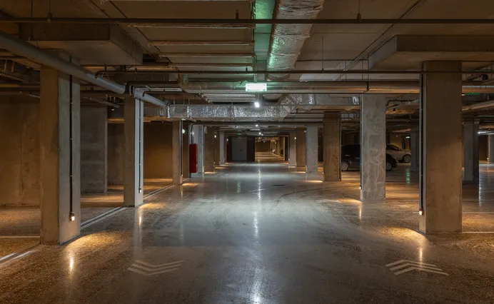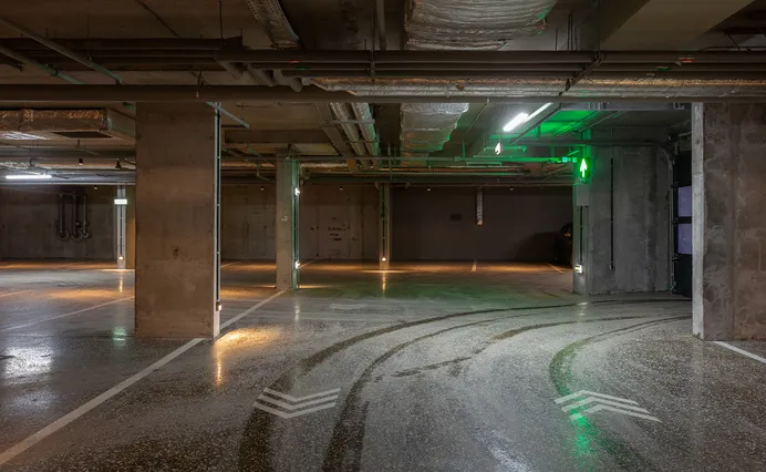 Парковочные места спроектированы таким образом, чтобы было одинаково удобно владельцам крупных внедорожников и компактных машин. Из паркинга можно подняться на лифте сразу на свой этаж.