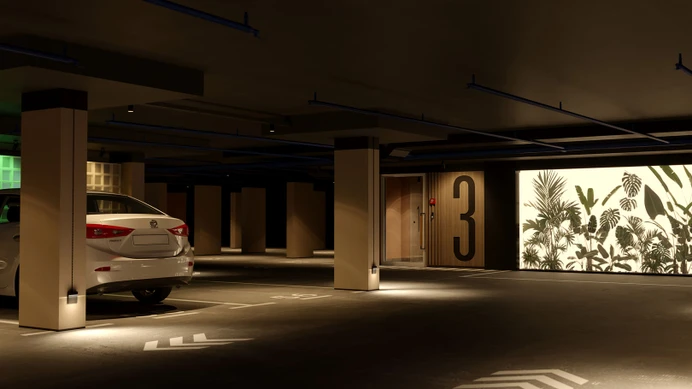 В подземный паркинг можно спуститься на лифте со своего этажа. Жителям удобно переносить тяжёлые вещи: пакеты с продуктами, детские коляски и технику. Из паркинга можно подняться на лифте сразу на свой этаж.