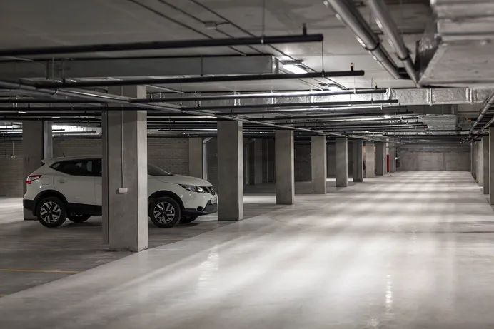 В подземный паркинг можно спуститься на лифте со своего этажа. Жителям удобно переносить тяжёлые вещи: пакеты с продуктами, детские коляски и технику. Из паркинга можно подняться на лифте сразу на свой этаж.